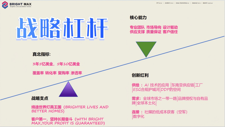 再说说改革方向。“缔造世界灯具王国”,这不是一句口号,是我们要一起圆的“大梦想”。怎么圆?靠的是“借势”,更靠的是“做实”。“一带一路”是势,AI技术是势,东南亚供应链是势,但这些“势”不是用来“喊口号”的,是要落到每一笔订单、每一次服务里的——用AI把订单处理的效率提上来,用东南亚供应链把产品的性价比做上去,用“全球本土化”的思路把不同市场的需求摸透。咱们不搞“虚头巴脑”的东西,要做就做“客户看得见、市场认得出”的事。