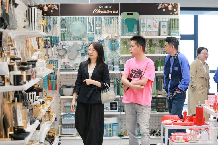 张总首先参观了东村样品间,了解出口市场、品类布局、设计研发等相关情况。
